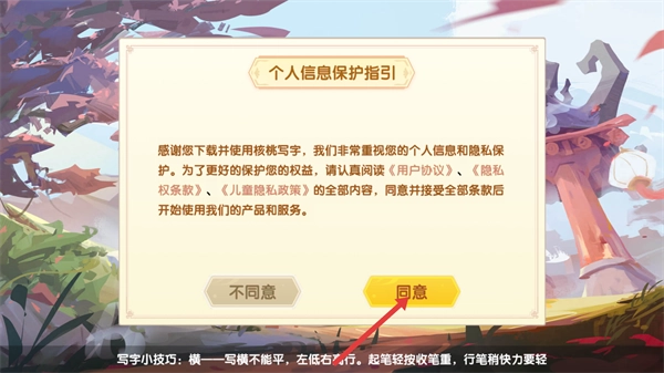 1、仔细阅读【个人信息保护指引】里包含的《用户协议》《隐私权条款》《儿童隐私政策》相关内容,随后点击【同意】按钮,即可继续推进应用的使用流程。