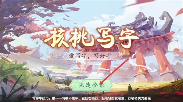 2、在显示着“爱写字,写好字”标语的【核桃写字】启动页上,点击【快速登录】按钮,即可进入账号登录的操作界面。