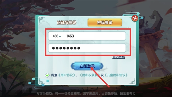 4、在密码登录界面输入【账号】和【密码】,勾选相关协议后,点击【立即登录】按钮,即可完成账号登录。