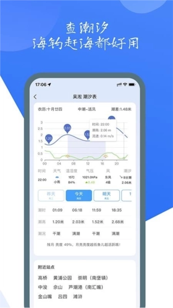 钓鱼爱好者外出野钓时,可掌握各类户外活动所需的数据信息,实时监测气压变化情况;平台覆盖全国300多个潮汐观测点,只需一键操作,就能查询潮汐状况,涨潮、落潮的时间以及潮水的流速都清晰可见,是矶钓、海钓和赶海的得力助手,祝您出行顺利、收获满满!