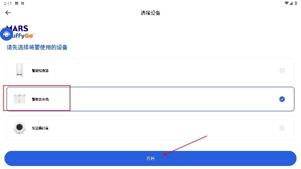 3、在设备选择列表中,选中“智能饮水机”这一选项,然后点击“开启”按钮以确认该选择。