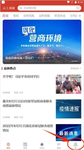 1、接着打开云上夷陵,进入主界面后点击“我”这个用户选项。