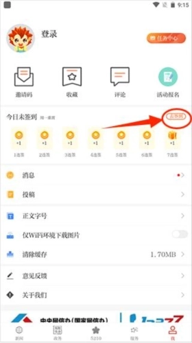 2、进入用户中心后,在页面下方找到签到版块,点击“去签到”选项完成签到操作。