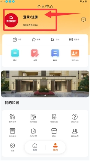 1、打开个人中心,通过登录注册入口完成账户操作。