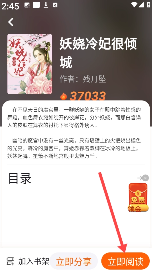 1、打开应用进入书籍详情页面,挑选一本自己喜欢的小说。