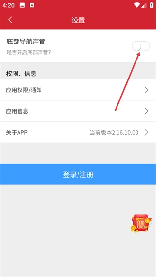 3、进入设置页面后,找到【底部导航声音】这一选项,点击它对应的开关按钮,就能控制底部导航在操作时的声音开启或关闭状态。