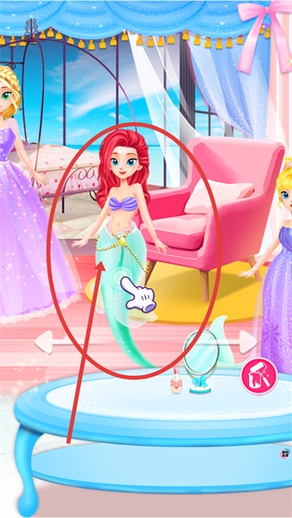1、进入装扮界面后,点击想要操作的角色(例如美人鱼形象),即可开启该角色的美容护理步骤。