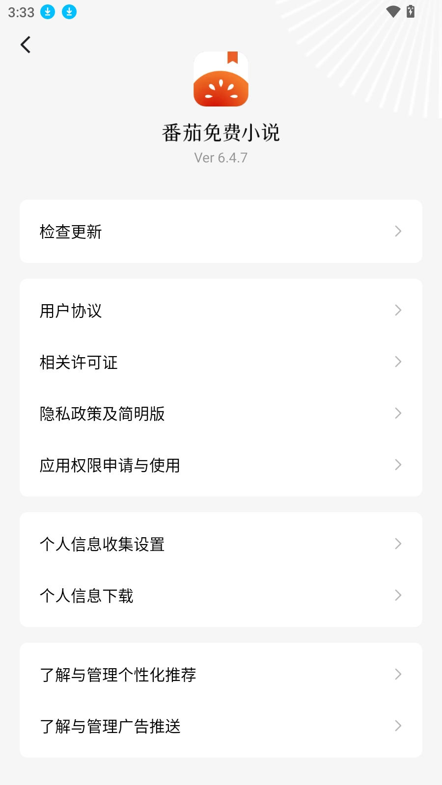 2.找到页面右上方的设置图标并点击,然后向下滑动页面,找到“关于番茄文字”选项。