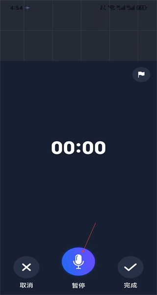 4、登录后回到录音页面,点击麦克风图标即可启动录音,之后可以通过暂停和完成按钮进行相应操作。