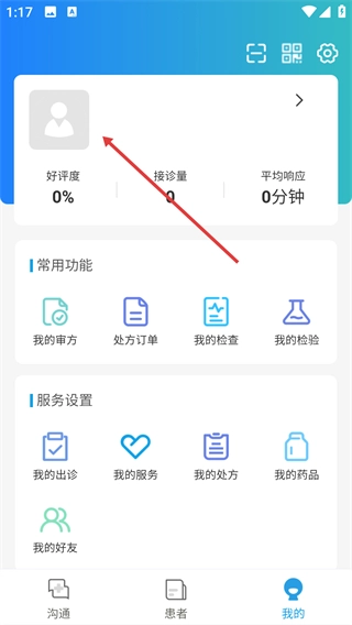 1、在互联网云医院平台的沟通页面,点击底部的【我的】选项,即可进入个人功能管理界面。