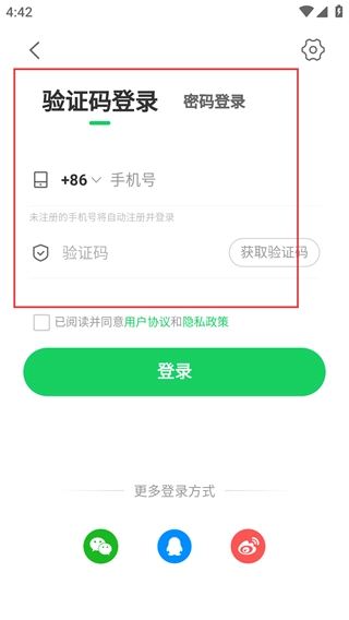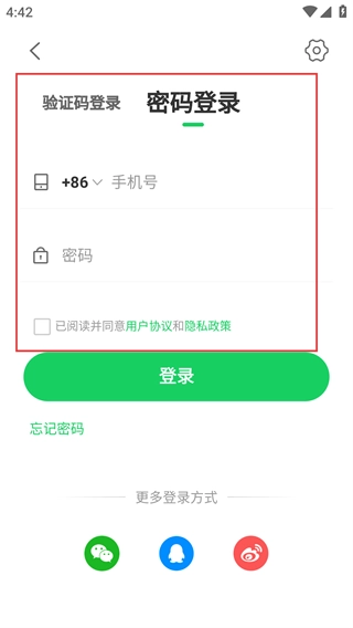 4、切换到【密码登录】页面,输入【+86-号码】和【密码】,勾选相关协议后点击登录按钮,即可完成账号验证流程。