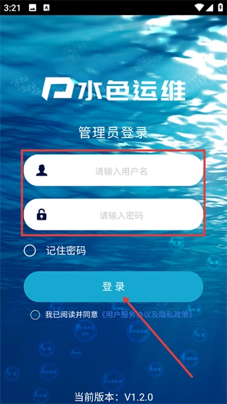 1、在【水色运维】的管理员登录界面,依次在相应输入框中填写【用户名】与【密码】,为完成登录操作做准备。