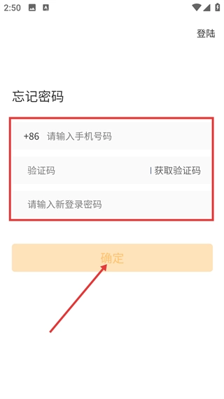 2、进入密码找回页面后,先填写【+86-请输入手机号码】,获取并填写验证码,设置新密码后点击【确定】按钮,即可完成密码重置操作。