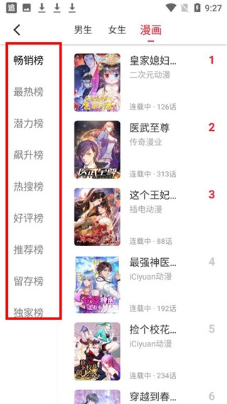 3、可以依据个人喜好挑选小说或漫画,也能通过书籍分类、排行、榜单等方式来筛选自己想要阅读的书籍内容;