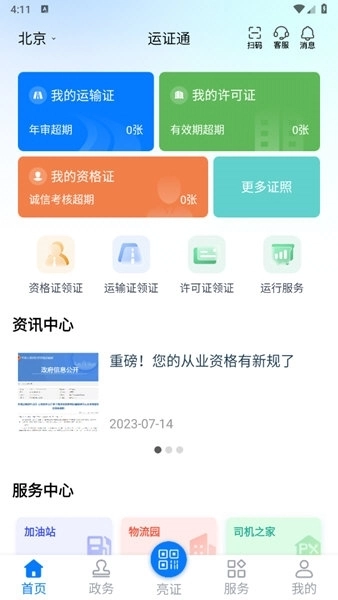 运政通是一款专门面向运输行业人员开发的道路运输政务服务应用,它与全国各省市的道路运输电子证照系统及运政管理系统实现数据互通和业务联动,为道路运输经营业户和从业人员提供道路运输经营许可证、道路运输证、从业资格证这三类电子证件的在线申领、亮证展示、授权使用服务,同时支持线上办理各类运政相关业务。