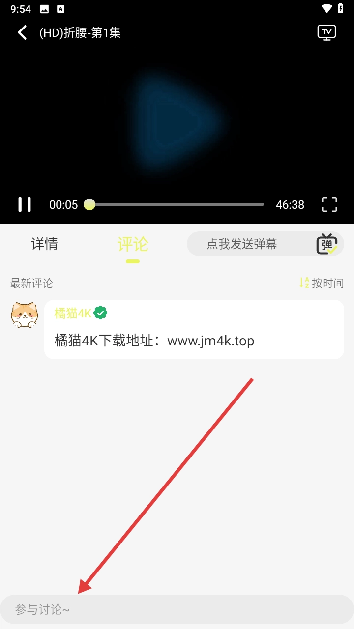3、进入播放页面后,用户能够发送实时弹幕,和其他观众互动交流观看感受。