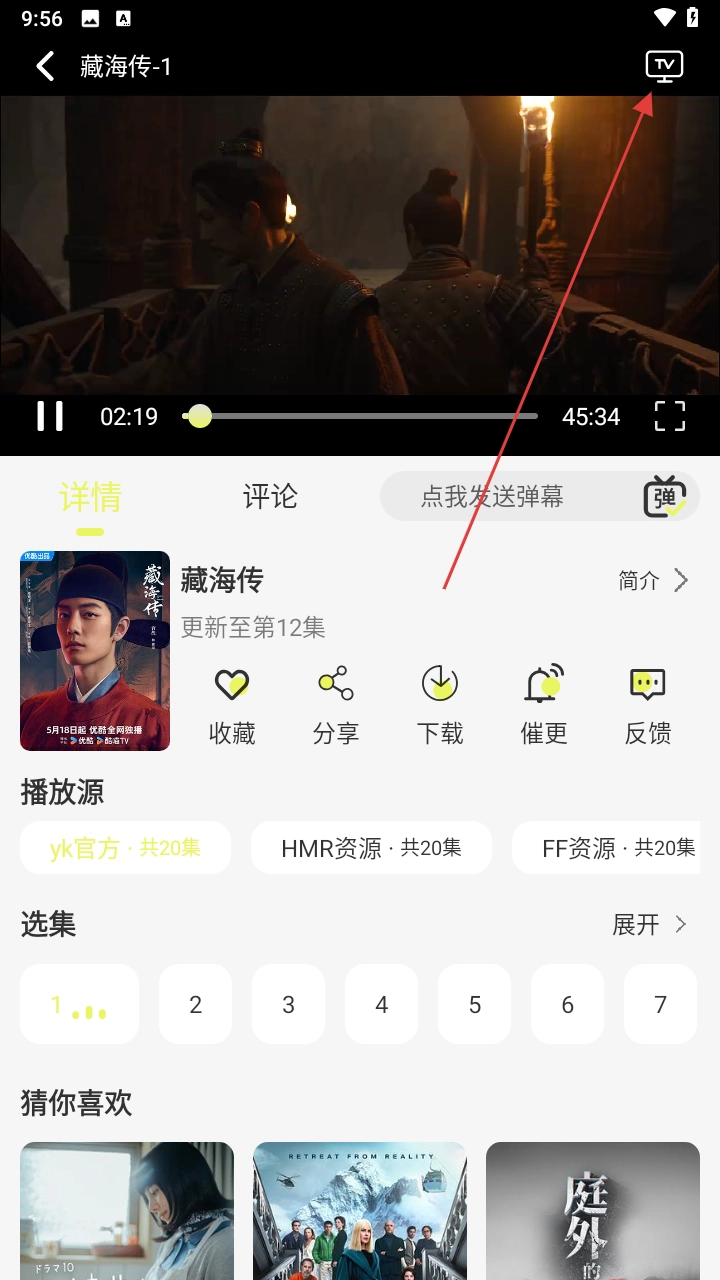 2、在播放界面的右上角找到“TV”图标,点击该图标就能开启投屏功能。