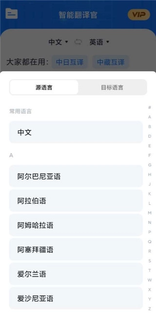 1、启动软件后,第一步要做的是设定目标语言类型,也就是选择您希望将内容翻译成的语言。