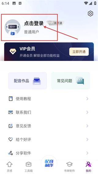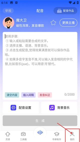 2、在配音制作界面,点击底部的【我的】按钮,进入个人中心页面,进行账号相关的操作。