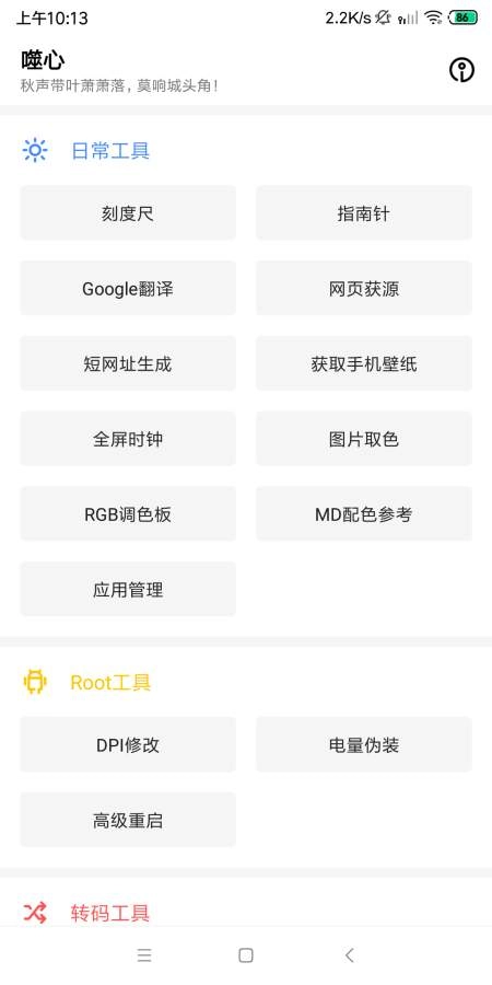 噬心工具箱是一款功能丰富的工具软件,能为用户提供各类修改服务,还包含多种实用工具,比如测量工具、水平仪、声音仪器、振动仪器等。在日常生活里,人们常常会用到各类工具,而这款工具箱能在不少场景中为你提供帮助,堪称不容错过的实用神器,快来体验吧!
