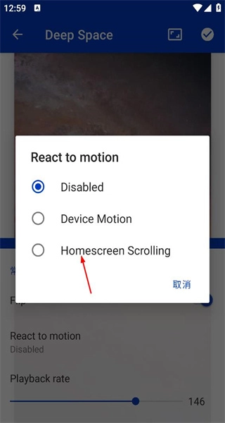 3、在壁纸设置栏中找到Reacttomotion选项,点击该选项以准备调整功能模式。