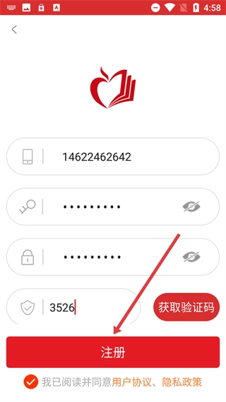 4、在注册页面填写【账号】-【密码】等相关信息,勾选同意协议后,点击页面底部的【注册】按钮,即可完成账号注册流程。