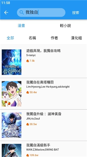 2、在这里你可以检索各类漫画、小说作品,也可以直接搜索作者或汉化组。