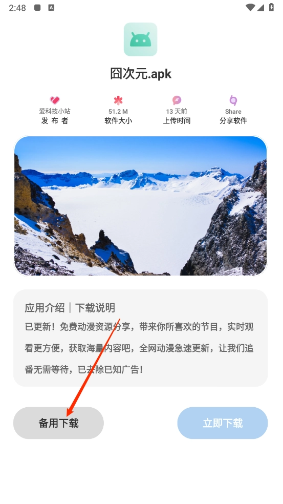 4、进入动漫详情页,点击"备用"。