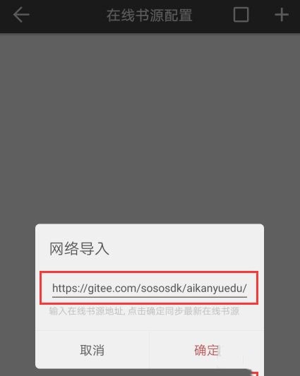 5、可选择网络导入或本地导入两种方式。此处以网络导入为例,点击进入后,输入在线书源的地址,再点击确定即可完成操作。