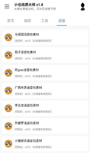 4、语音栏目里收录了不少知名网红人物的语音素材包。