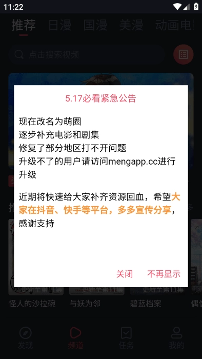 打开软件后,首先看到的公告显示它已经改名为萌圈,并且内容也已更新。