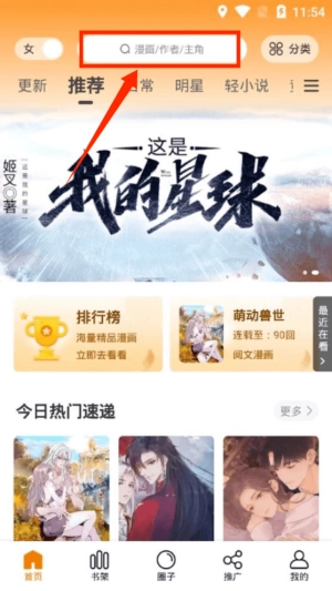 1、进入应用首页后,可在顶部的搜索栏中输入作品名称或作者姓名进行直接检索。