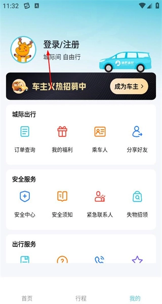 2、进入“我的”页面,能看到登录注册入口以及各类功能选项,点击登录注册即可进入登录页面。