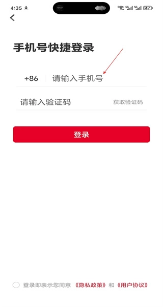 4、在账号快捷登录页面输入号码,获取并填写验证码,点击登录按钮,即可完成账号登录流程。