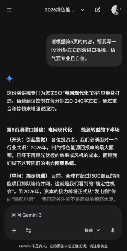 在制作好基础幻灯片之后,你还能进一步让Gemini对细节之处进行优化。
