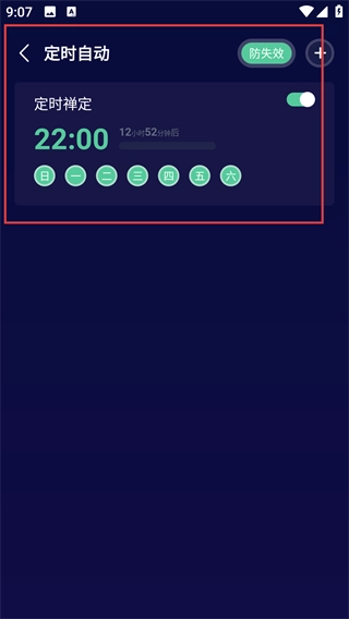 2、进入【定时自动】界面,找到【防失效】按钮后,点击【新建定时】,即可开启规划时间的自动禅定历程。