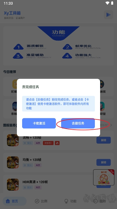 1、软件打开首页,选择功能解锁