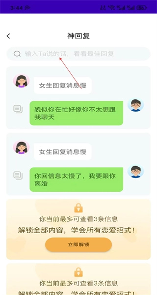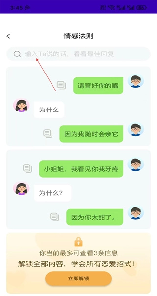 2、实时更新:我们会定期更新恋爱话术与实战案例,让用户能紧跟时代潮流,掌握实用的恋爱聊天技巧。