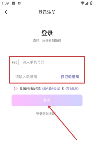 2、进入账号登录页面后,先输入账号,点击“获取验证码”并填入收到的验证码,确认协议后点击“登录”完成操作。