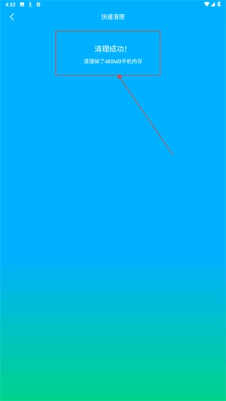 2、点击【快速清理】后,系统会完成内存清理(例如清理480MB),从而释放设备的存储空间。