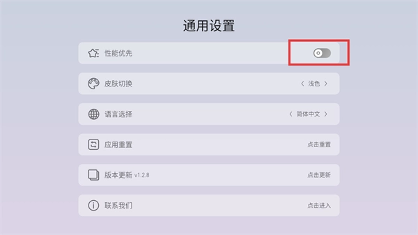 2、进入通用设置页面后,找到【性能优先】选项,目前它右侧的开关是关闭的,点击这个开关就能开启该功能。