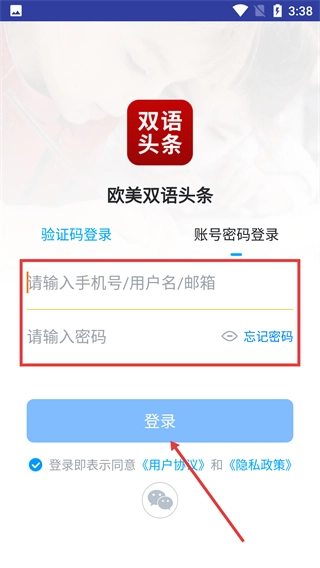 2、切换至账号密码登录模式后,在【请输入账号/用户名/邮箱】输入框中填写账号信息,接着输入密码,勾选相关协议后点击【登录】按钮。