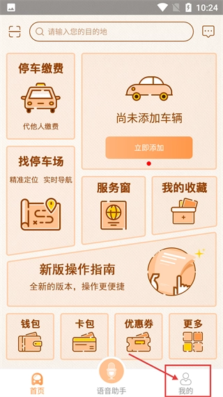 进入该应用首页后,能使用【停车缴费】【找停车场】等功能,点击底部的【我的】选项,就能进入个人中心页面。
