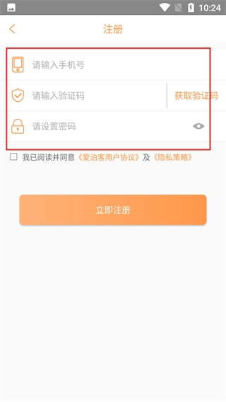 4、在【注册】界面,需按顺序填写【请输入号】-【请输入验证码】-【请设置密码】,勾选相关协议后点击【立即注册】按钮,即可完成注册流程。