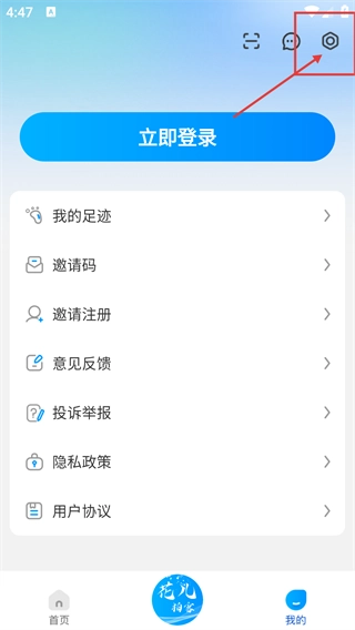 2、进入“我的”页面后,点击右上角的设置图标,即可进入应用的设置界面。