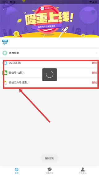 在该页面中,点击对应条目右侧的【复制】按钮,即可把【QQ交流群】【微信号(拉群)】【微信公众号搜索】的相关信息复制到剪贴板。