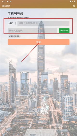 2、选择验证码登录方式时,在【请输入号/账号】栏填写信息后点击【获取验证码】,输入收到的验证码再点击【登录】(新用户可直接通过该方式完成注册)。