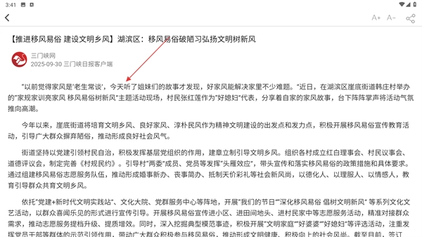 1、在《三门峡日报》首页的“本地”栏目中,点击与【推进移风易俗建设文明乡风】相关的文章,进入详情页面即可了解具体的实施举措。