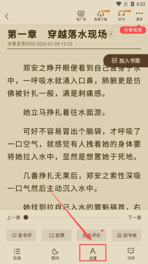 3、选择“设置”选项,便于您依据自身需求调整阅读体验。