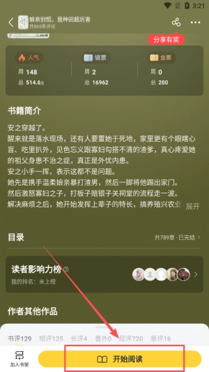2、点击“开始阅读”按钮,进入作品正文部分,享受悠闲的阅读时光。